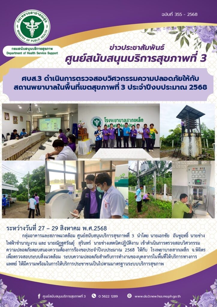 ศบส.3 ดําเนินการตรวจสอบวิศวกรรมความปลอดภัยให้กับโรงพยาบาลสากเหล็ก จ.พิจิตร ประจําปีงบประมาณ 2568