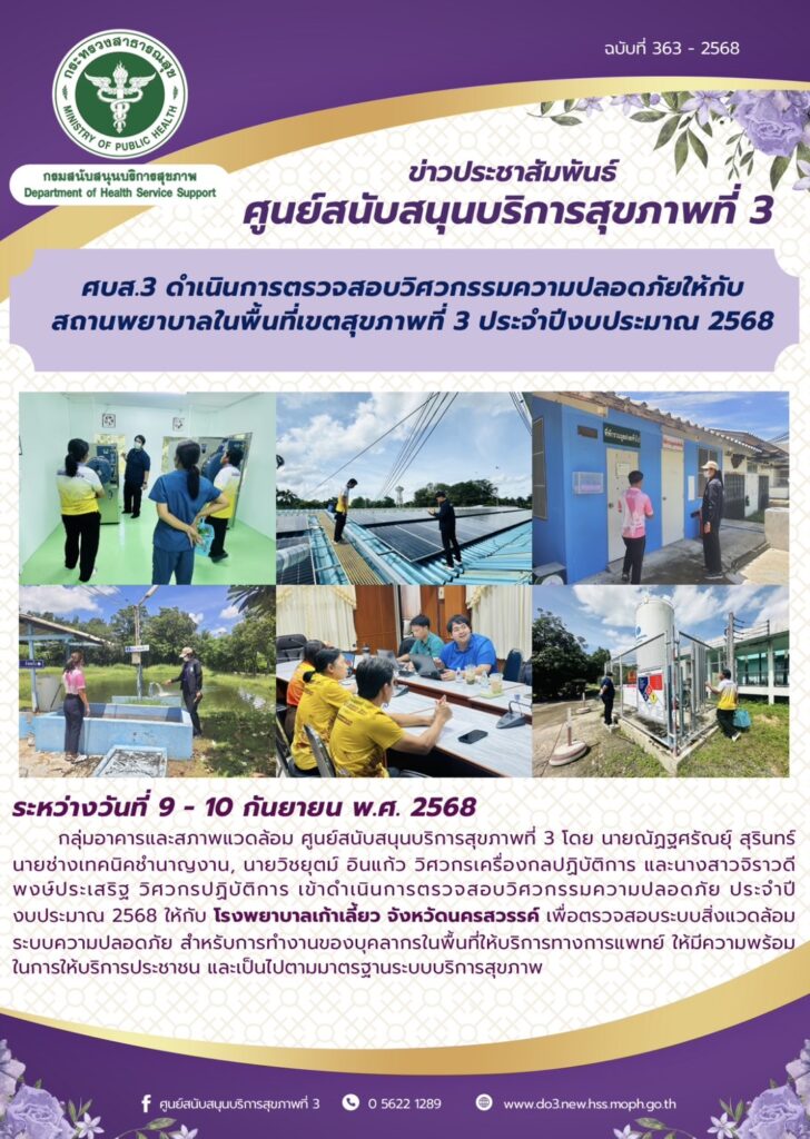 ศบส.3 ดําเนินการตรวจสอบวิศวกรรมความปลอดภัยให้กับ สถานพยาบาลในพื้นที่เขตสุขภาพที่ 3 ประจําปีงบประมาณ 2568
