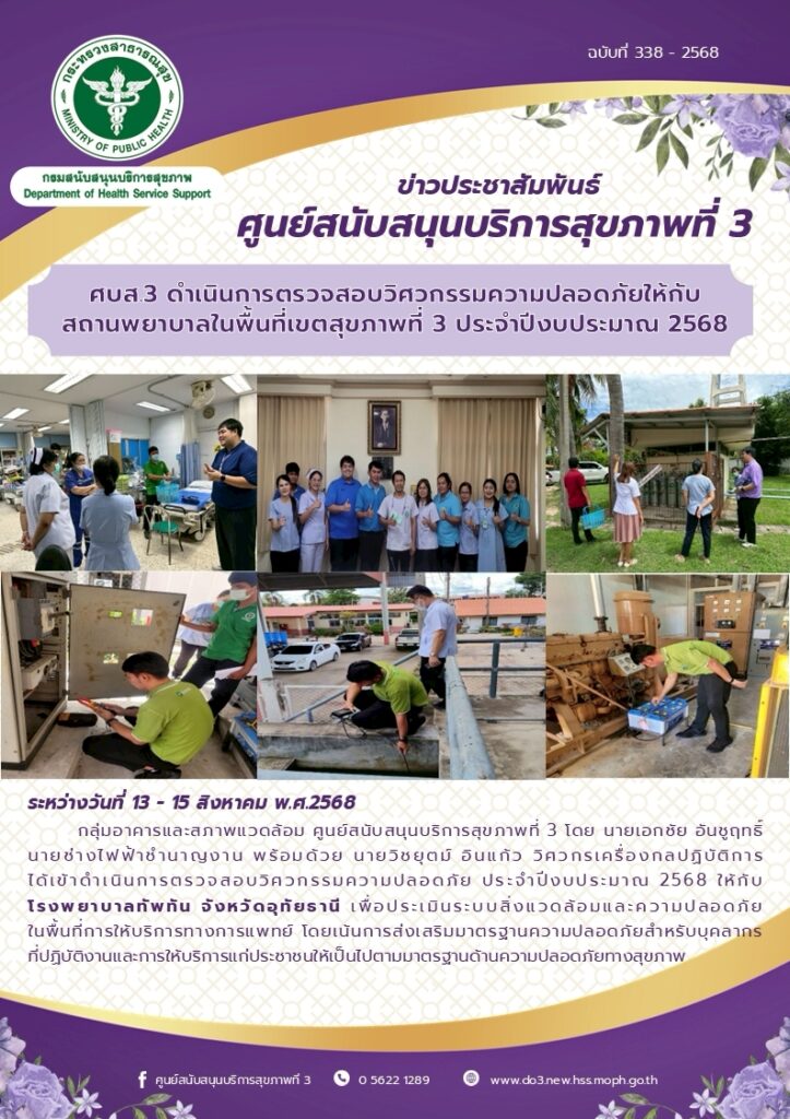 ศบส.3 ดําเนินการตรวจสอบวิศวกรรมความปลอดภัยให้กับ โรงพยาบาลทัพทัน จังหวัดอุทัยธานี ประจําปีงบประมาณ 2568