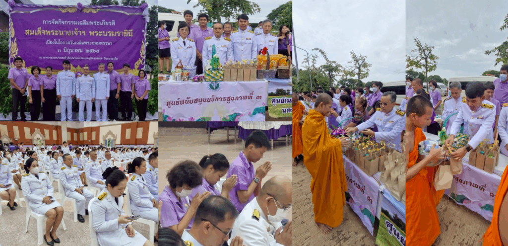 ศบส.3 เข้าร่วมกิจกรรมเนื่องในวันเฉลิมพระชนมพรรษาสมเด็จพระนางเจ้าฯ พระบรมราชินี ศบส.3 เข้าร่วมกิจกรรมเนื่องในวันเฉลิมพระชนมพรรษาสมเด็จพระนางเจ้าฯ พระบรมราชินี วันที่ 3 มิถุนายน พ.ศ. 2568 นายอุทิศ จิตเงิน ผู้อํานวยการศูนย์สนับสนุนบริการสุขภาพที่ 3 พร้อมด้วยเจ้าหน้าที่ศูนย์สนับสนุน บริการสุขภาพที่ 3 เข้าร่วมกิจกรรมเนื่องในวันคล้ายวันเฉลิมพระชนมพรรษาสมเด็จพระนางเจ้าฯ พระบรม ราชินี ณ อาคารอเนกประสงค์ สัมมนา และจัดแสดงนิทรรศการ บึงบอระเพ็ด โดยมี นางสาวชุติพร เสชัง ผู้ว่าราชการจังหวัดนครสวรรค์ เป็นประธานในพิธี พร้อมด้วยรองผู้ว่าราชการจังหวัดนครสวรรค์ หัวหน้า ส่วนราชการ ข้าราชการพลเรือน ข้าราชการทหาร/ตํารวจ องค์กรเอกชน นักเรียน นักศึกษา จิตอาสา พระราชทาน และประชาชนชาวนครสวรรค์ โดยกิจกรรมประกอบด้วย พิธีเจริญพระพุทธมนต์ พิธีทําบุญตักบาตรถวายพระราชกุศล และพิธีถวายพระพรชัยมงคล